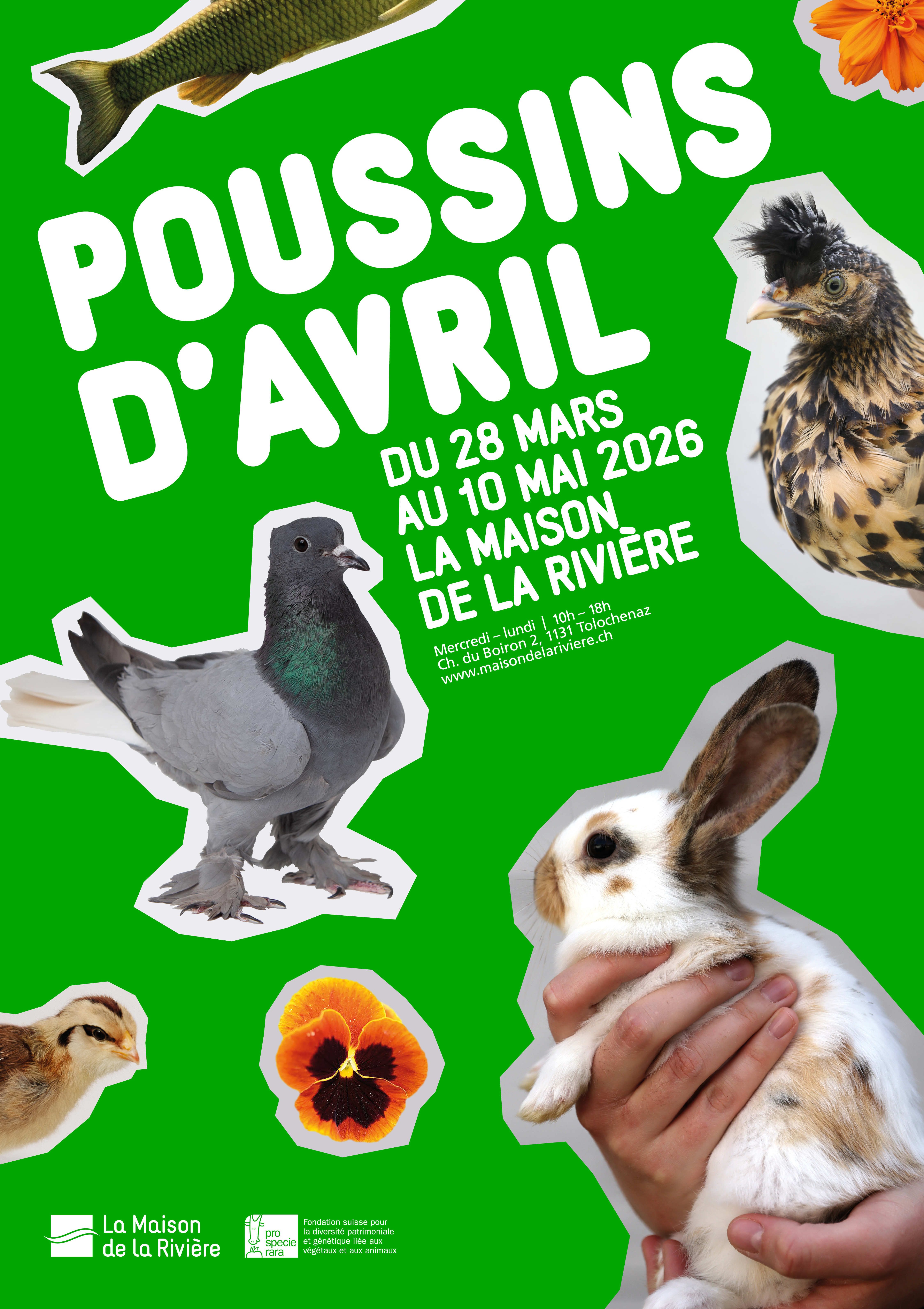 Les beaux jours reviennent… et les poussins aussi ! Pour sa 8e édition, l’exposition Poussins d’Avril, en collaboration avec la ProSpecieRara, fait éclore le printemps. Des animaux suisses pas comme les autres, aux talents insoupçonnés, et des instants tout doux attendent petits et grands pour une immersion pleine de vie au coeur de notre patrimoine animal. Quand on vous dit « poule », vous pensez peut-être à une jolie pondeuse blanche au fond du jardin ? Mais avez-vous déjà rencontré une poule à huppe ou une poule barbue ? Oui, elles existent, et elles sont suisses ! Préparez-vous à ouvrir grand les yeux : ici, les animaux que l’on croit connaître révèlent leurs secrets les plus surprenants.